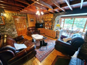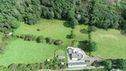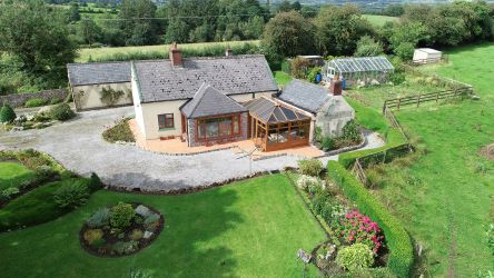 Winding gravel driveway off the local roadway with off-street parking to the front and sides of the property. Fantastic landscaped gardens around the immediate dwelling with flowerbed areas and an abundance of colour from mature trees, plants and hedging. Elevated garden vegetable area with an abundance of fruit trees and a large glass house in place. Stone built workshop, garage and shed with pump house for the well located in the garden.