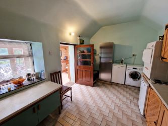 Complete with tile flooring and a fantastic stone feature wall with a sold fuel stove in place, an abundance of built in wall and floor storage units and plumbing for a washing machine and tumble dryer. Can be used as a utility room and further back kitchen storage area. This room was the original dairy house in the overall farm setting and was then converted to a workshop and connected to the main dwelling.