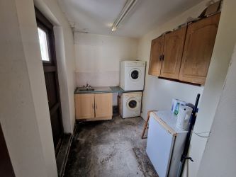 Built in wall and floor units with plumbing for washing machine and dryer and rear aspect door to courtyard garden area.