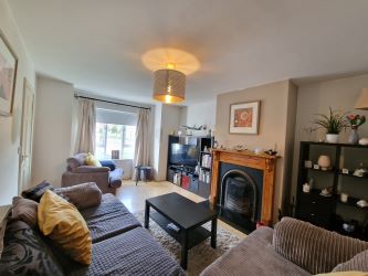Complete with laminate timber flooring, bay style window to the front of the property, feature solid fuel open fire place with a decorative timber surround. Door off the entrance hallway or to the rear to the kitchen dining space.