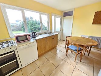 Kitchen Dining Room 4.1m x 3.1m (13'5" x 10'2"). Built in base units, tile flooring, wall mounted shelving, door to rear garden and door to formal dining/ bedroom one.