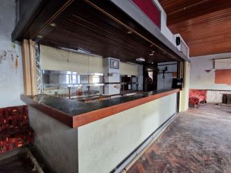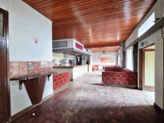 Main Bar Area 15m x 7m (49'3" x 23'). Parquet flooring, large counter and seating area, separate entrance from the car park, doors to bathrooms, high ceilings and original fireplace.