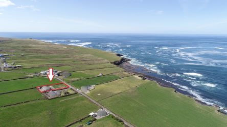 Not often does a property come for sale in Farrihy, in particular one that enjoys an incredible elevated site, with outstanding views of the Atlantic Ocean and distant cliffs. The ruin of this single story home on approx. 0.18 hectares would require full reconstruction, allowing the prospective buyer to design and build their dream Wild Atlantic Way home (subject to planning permission). There is a gravel driveway and mature lawn area to the front with a detached shed to the side. Services to the original property included mains water, mains electricity with a septic tank on site. Located in the townland of Farrihy approx 1.5km off the main N67 Kilkee Doonbeg road and 3.8km from the seaside resort of Kilkee and 7km from Doonbeg Village, offering the prospective buyer easy access to restaurants, bars, schools, golf courses, a number of beautiful beaches, diving facilities and cliff walks to mention a few of the many amenities in the area.