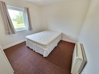 Carpet flooring, side aspect window and electric storage heater.
