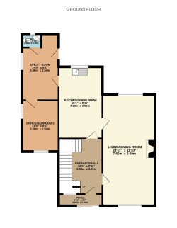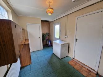 Lino flooring, side aspect window and doors to office, wc and back door access to rear garden area.