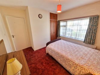 Carpet flooring, front aspect window and built in wardrobes.