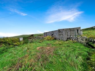 This is an old derelict cottage for sale on an elevated site overlooking the Aran Islands, Atlantic Ocean within 2km of Fanore and 3km of the beach. This property has fantastic potential in quite a unique setting. The outside has a number of old block built out buildings with one large one to the front and an adjoining open one to the right hand side and to the left hand side small out buildings used for farm animals. The outside area has a small driveway to the front with fabulous views looking out onto the ocean and then the site elevates up to the rear and also has a strip of ground to the side.