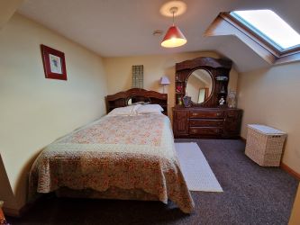 Bedroom 1 3.55m x 3.5m (11'8" x 11'6"). Stairway leading to 2nd Floor bedroom. Carpeted flooring, good size double room, velux window and storage into the eaves.