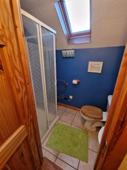 Shower Room 2m x 1.4m (6'7" x 4'7"). Low level wc, corner electric shower and wash hand basin.